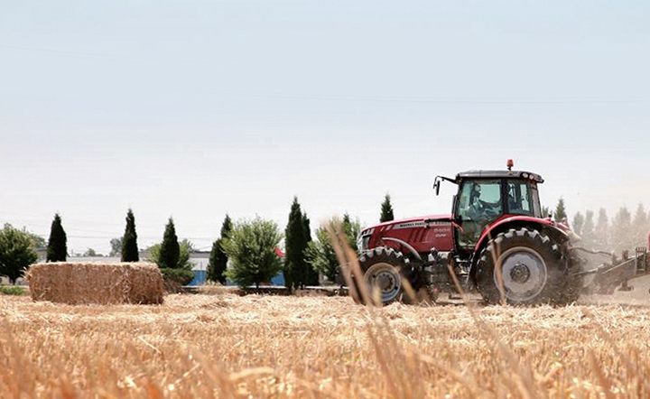 6月6日,梨林鎮(zhèn)南程村的麥田里,農(nóng)機(jī)正在打捆秸稈,回收利用。 記者 李楠 攝