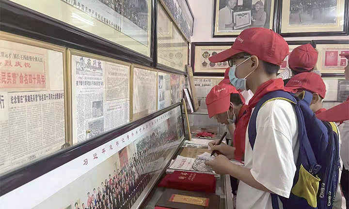 學(xué)生們?cè)谘ζ饺A家庭黨史教育展館內(nèi)參觀學(xué)習(xí)