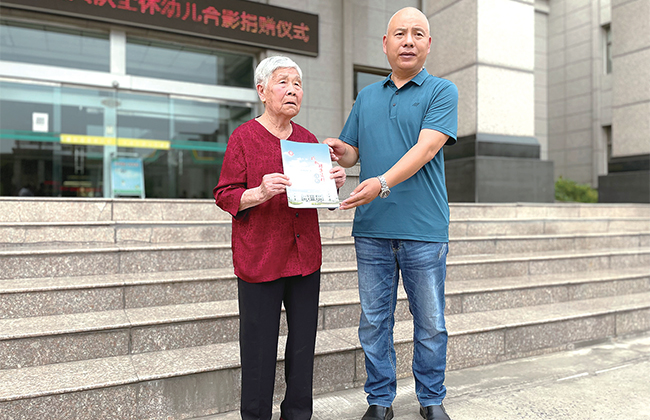 孫中紅(右)為劉素蘭(左)頒發(fā)捐贈榮譽證書