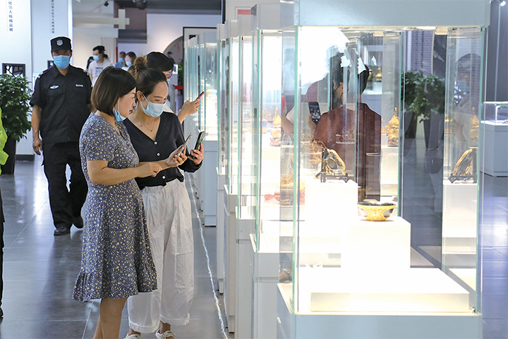 6月22日,首屆濟(jì)源白銀文化節(jié)在愚公故里開幕。大師精品展展廳展出了30余位國家級工匠大師的500余件精美力作,琳瑯滿目的展品令人流連忘返。記者 李楠 攝