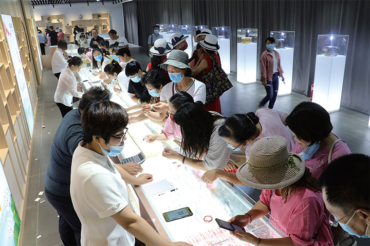 市民在中國(guó)白銀城欣賞著琳瑯滿目的銀工藝品、銀飾品時(shí),發(fā)出陣陣贊嘆。