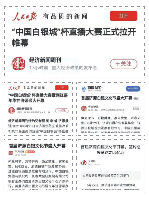 對(duì)首屆濟(jì)源白銀文化節(jié)開幕式報(bào)道的部分媒體截圖