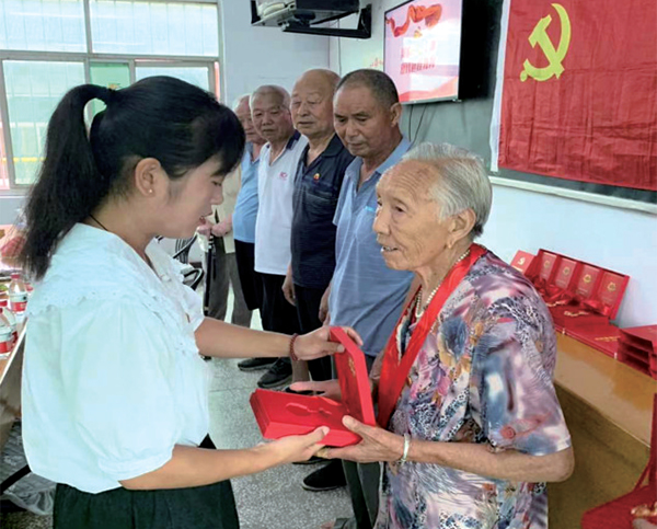 今年,經(jīng)黨中央批準(zhǔn),首次為黨齡達(dá)到50年且一貫表現(xiàn)良好的黨員頒發(fā)“光榮在黨50年”紀(jì)念章?!拔掖骞灿?名‘光榮在黨50年’的老黨員,其中一名因身體原因不能到達(dá)現(xiàn)場。隨后,我們會把紀(jì)念章親自送到他手上?!陛T城鎮(zhèn)交兌新村黨支部委員宋見告訴記者,為老黨員頒發(fā)紀(jì)念章,充分體現(xiàn)了黨中央對老黨員的關(guān)心和關(guān)懷、對老黨員為黨和國家事業(yè)作出突出貢獻(xiàn)的銘記和肯定。同時,此舉也能引導(dǎo)村里的年輕黨員干部對標(biāo)老黨員的崇高境界和務(wù)實作風(fēng),賡續(xù)光榮傳統(tǒng),汲取奮進(jìn)力量。