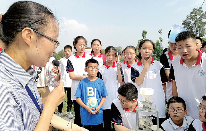 7月6日,濟水一中七(9)班學生在老師的帶領下走進濟源氣象局,參觀氣象科普園。