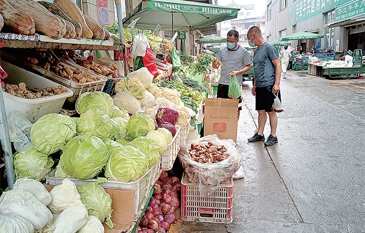 市民在南街集貿(mào)市場(chǎng)買(mǎi)菜
