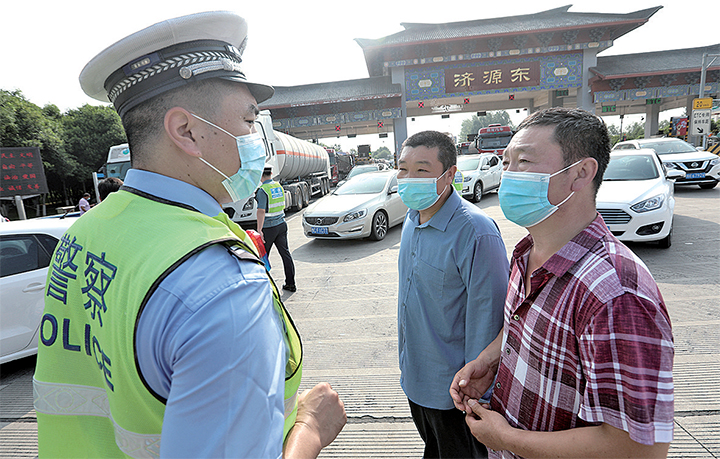 8月2日,民警在濟(jì)源高速北站執(zhí)勤,對(duì)出入濟(jì)源交通節(jié)點(diǎn)進(jìn)行管控。