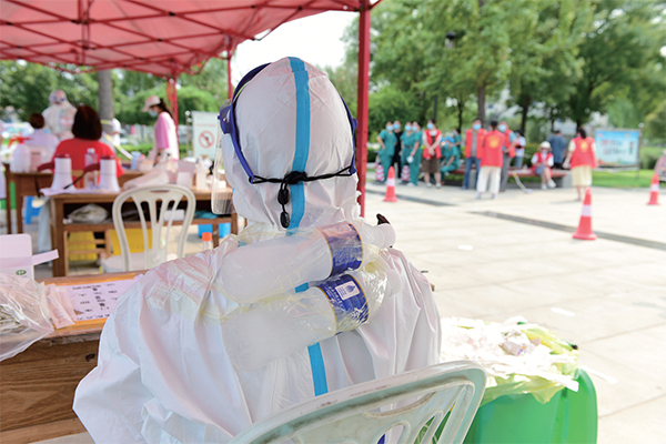 讓他們感到欣慰的是大伙兒的理解與支持?!跋挛缱顭崮菚?,村民們沒人抱怨,有序排隊。有些村民做完核酸檢測后,還回家給我們拿來了冰鎮(zhèn)飲料和礦泉水?!倍暾f,由于戴著面罩、口罩,村民們送來的冷飲他們并沒有喝,而是將其綁在了身上降溫。