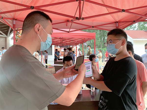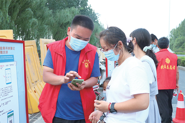 8月7日,濟源啟動全員核酸檢測。北海街道立即啟動應(yīng)急機制,集結(jié)機關(guān)干部及黨員志愿者奔赴核酸檢測點。凌晨、中午、傍晚、深夜……那一抹抹耀眼的紅色始終穿梭在檢測點的每個角落。