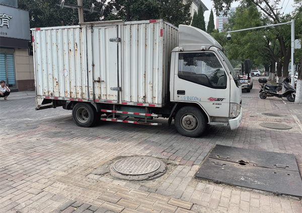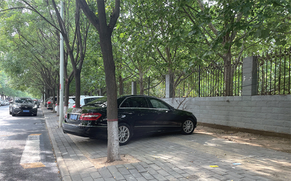 記者注意到,為了方便車輛通行,停放在周邊小區(qū)的車輛大多會將半個(gè)車身“騎”在便道上,盲道則被完全“壓”在了車下。