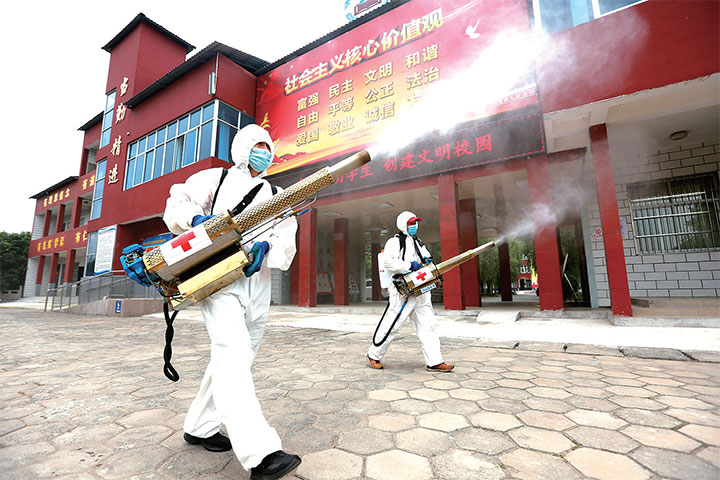8月26日,濟(jì)源紅十字應(yīng)急救援隊在承留鎮(zhèn)初級中學(xué)進(jìn)行消殺作業(yè),以迎接學(xué)生開學(xué)。
