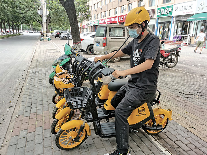 這是記者近日在濟(jì)源街頭拍攝的美團(tuán)單車。