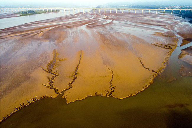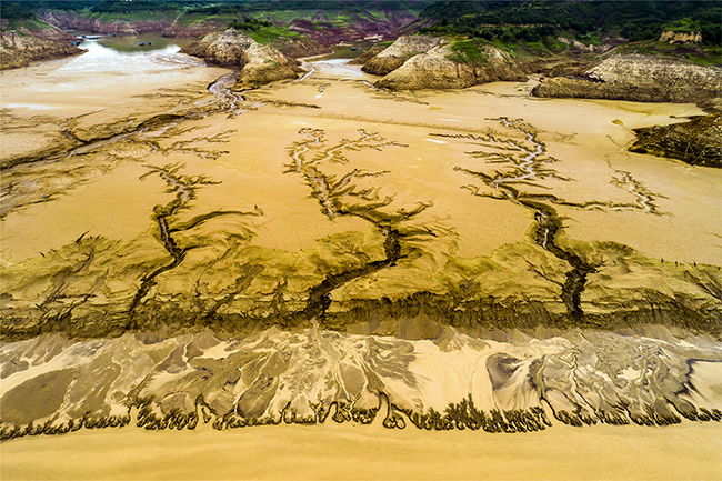 “黃河小浪底調(diào)水調(diào)沙后,河道水位下降,河床大面積裸露,形成造型各異的沙畫圖案,造型逼真、線條流暢,令人贊嘆。這些精美的景觀深深吸引了我。于是,我多次沿黃河踩點拍攝,拍攝了這組作品?!编噰鴷熣f。