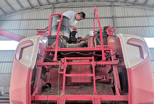 禾潤源農(nóng)業(yè)發(fā)展專業(yè)合作社聯(lián)合社工作人員正在對聯(lián)合收割機進行維護。