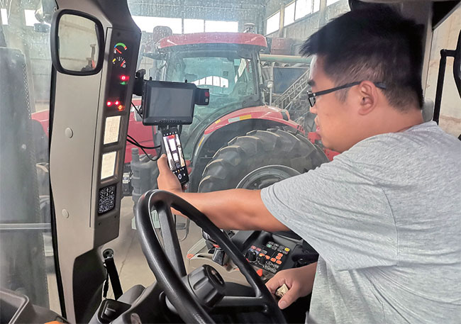 禾潤源農(nóng)業(yè)發(fā)展專業(yè)合作社聯(lián)合社工作人員正在對大馬力拖拉機進行“體檢”。