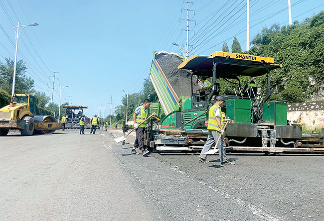 濟(jì)源網(wǎng)訊(記者 劉永芳)9月7日,在玉川大道水毀修復(fù)工程施工現(xiàn)場,施工人員正在熱火朝天地進(jìn)行施工作業(yè),攤鋪機(jī)、壓路機(jī)發(fā)出轟鳴聲……現(xiàn)場施工人員齊思遠(yuǎn)介紹:“現(xiàn)在正在攤鋪水泥粉煤灰穩(wěn)定碎石,兩臺攤鋪機(jī)連鋪。我們負(fù)責(zé)清理上面不平整的碎石。清理完成后,壓路機(jī)就立即進(jìn)行震動碾壓?!?br/>