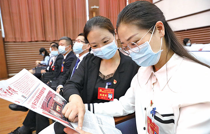 代表們?cè)隈雎牬髸?huì)。記者 李楠 程子明 攝