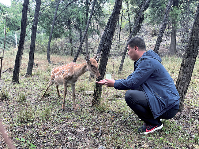 “過來,‘小鹿’……”伴隨著一聲聲清脆的呼喚,一只梅花鹿小心翼翼地靠近圍欄。這是國有濟(jì)源市南山林場護(hù)林員常苗苗在呼喚他的“小鹿”。