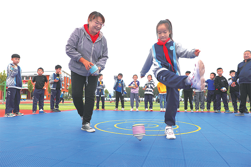 10月15日,東湖小學(xué)學(xué)生正在練習(xí)足螺。