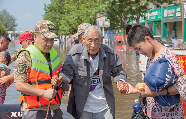 被轉移的受災群眾當中,有的人年事已高,不愿意走,趙科便第一時間和當?shù)卣畢f(xié)調,給這些人送去方便面、水等救援物資。7月25日早晨,水位已經達到1.8米,形勢嚴峻,但是趙科和隊員們克服種種困難,有的抱孩子、有的背老人……大家成功將群眾轉移到安全地帶。7月25日當天,趙科和隊員們轉移受災群眾550余人。