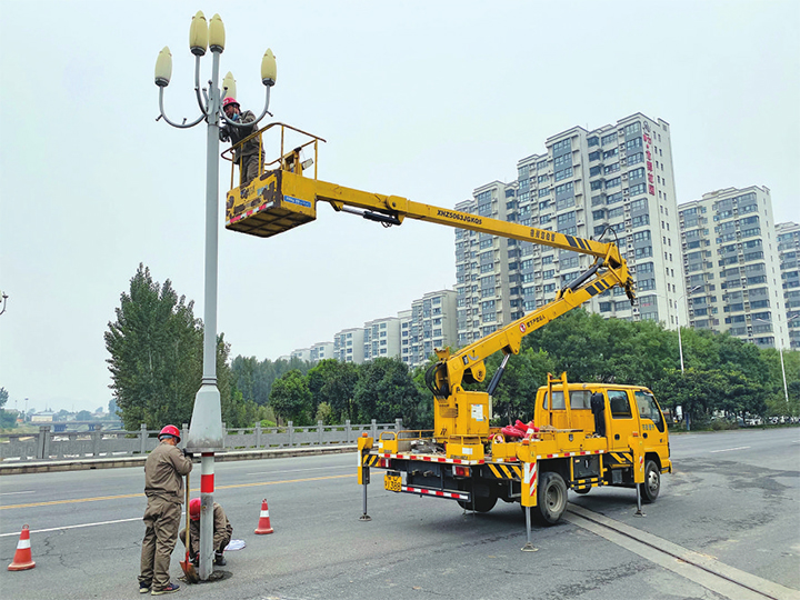 城投市政道路工程有限公司的工作人員正在修繕路燈。