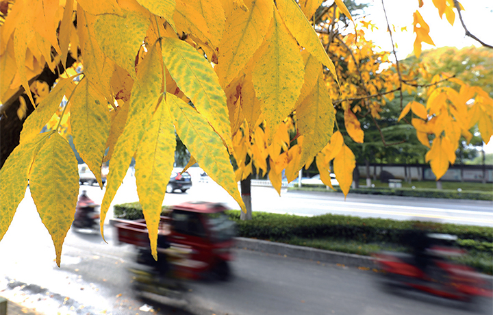 霜降已至,綠葉漸黃。近日,濟(jì)源大街小巷的樹木漸漸披上了金黃色的“秋日盛裝”,比如道路兩旁的槐樹、白蠟等。漸漸變黃的葉子呈現(xiàn)出一種別樣的秋日美感。