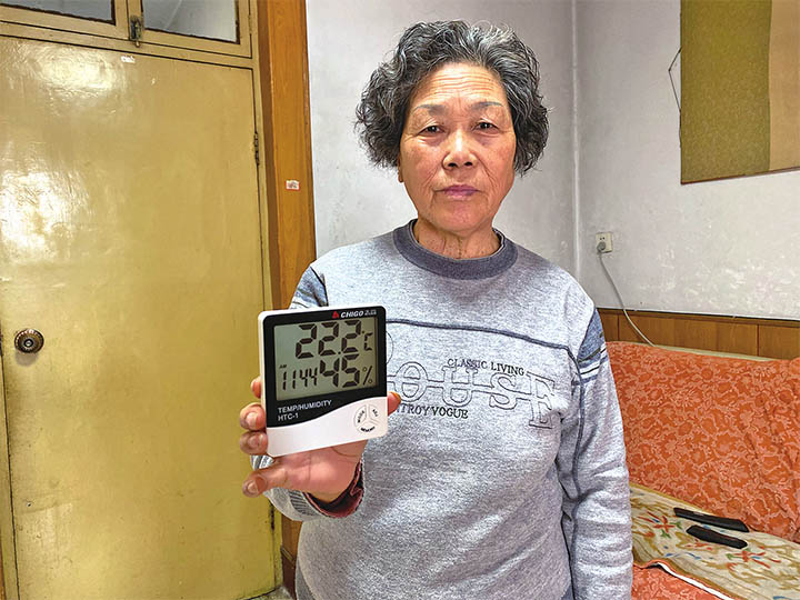 “22.8攝氏度,這樣的溫度最舒服?!痹邛卧葱^(qū),看到家中的溫度不斷攀升,賈桂英笑了起來。賈桂英說,鑫源小區(qū)是老舊小區(qū),今年小區(qū)整體改造提升,外墻增加了保溫層,相比往年,家中的溫度升高了許多,“以后在家里穿個單衣就可以了”。