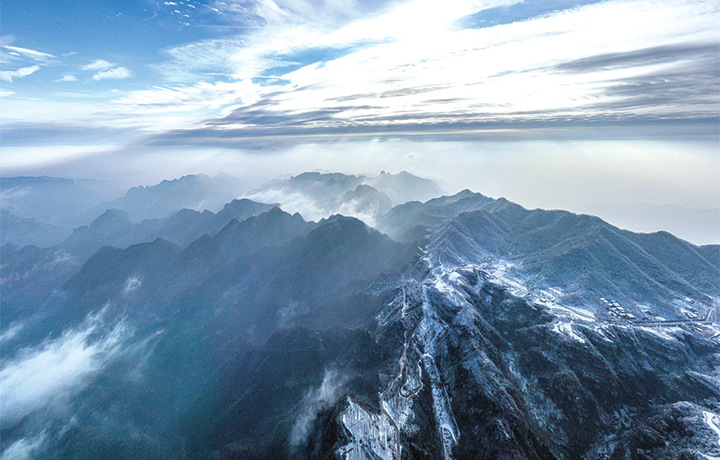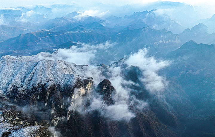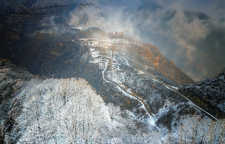 12月11日,雪后初晴的水洪池村分外美麗。古樸民居、皚皚白雪、繚繞云霧、靜謐山林相互映襯,讓這里如同畫境。(全媒體通訊員 周順 攝)