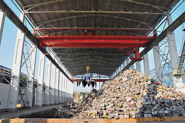 作為世界上廢舊蓄電池處理能力領(lǐng)先的企業(yè),豫光金鉛自主研發(fā)的“純氧側(cè)吹熔池熔煉直接熔煉再生鉛工藝”,有效實(shí)現(xiàn)了對鉛廢渣的再利用和再循環(huán),年回收處理廢舊鉛酸蓄電池40萬噸,年產(chǎn)再生鉛20萬噸、塑料1.2萬噸、硫酸110萬噸。