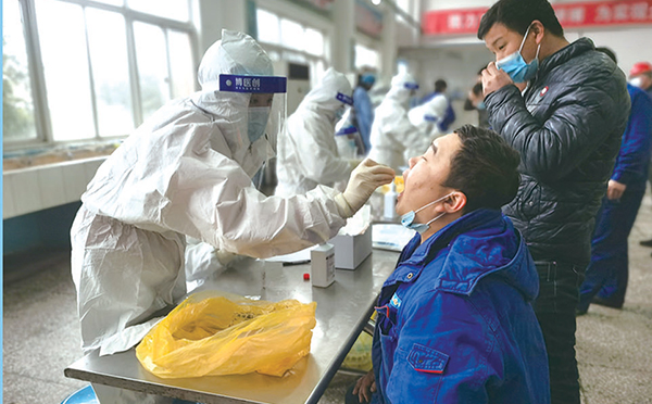醫(yī)護人員進企業(yè)進行核酸采樣