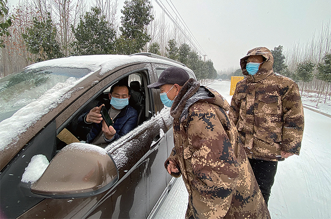 最近,濟(jì)源迎來(lái)了降溫雨雪天氣,夜間氣溫降至零下2攝氏度。然而嚴(yán)寒的天氣卻阻擋不了退役軍人志愿者們參與疫情防控的熱情。
