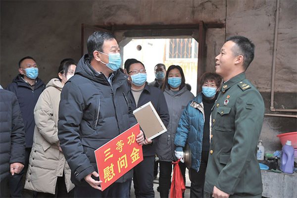 截至目前,市鎮(zhèn)(街道)兩級同心合力,為6名榮立三等功官兵家庭送去喜報(bào),走訪慰問部分退休干部、困難現(xiàn)役軍人家庭,向全市2000余名現(xiàn)役軍人家庭贈送了新春大禮包。