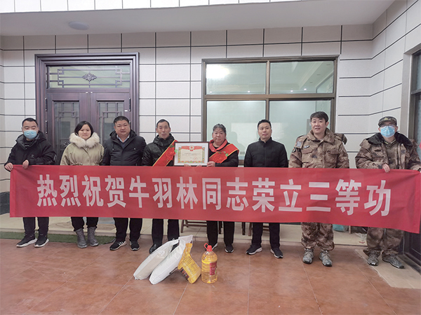 濟(jì)水街道為立功受獎現(xiàn)役軍人家庭送喜報(bào)