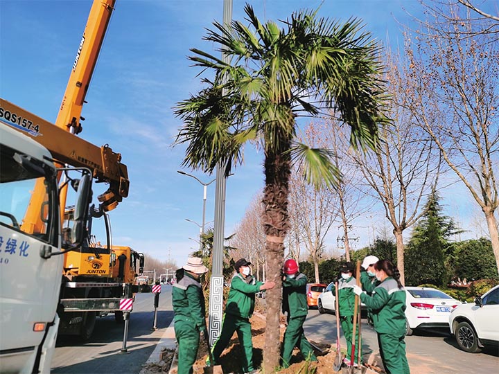 3月1日,在黃河大道西段,園林工人在分車帶內(nèi)栽植棕櫚。大家分工協(xié)作,有的平整場(chǎng)地,有的挖坑,有的栽植苗木……不一會(huì)兒,新栽植的苗木就成行了。一旁的灑水車對(duì)新栽苗木進(jìn)行澆灌?,F(xiàn)場(chǎng)一派繁忙景象。