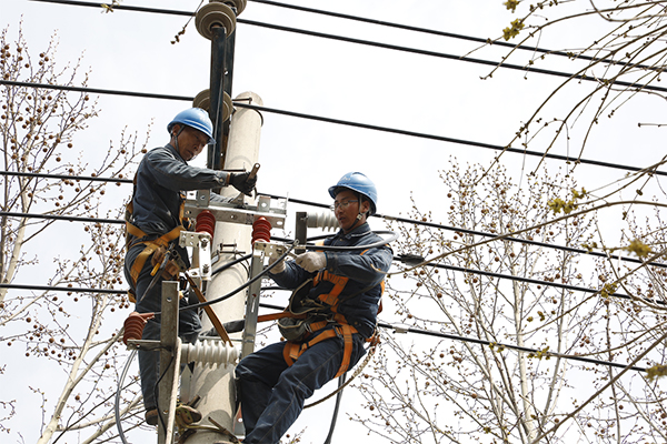 為提高配電線路共享互聯(lián)功能,濟(jì)源公司科學(xué)部署,統(tǒng)籌協(xié)同,結(jié)合線路地理位置因素,將10千伏罡城市線與10千伏罡亞線聯(lián)絡(luò)搭接,實(shí)現(xiàn)配電線路“手拉手”供電,進(jìn)一步優(yōu)化配置,提高線路供電可靠性。圖為3月20日,該公司市區(qū)供電中心正在10千伏罡城市線47基鐵塔安裝智能開(kāi)關(guān)。張磊 攝