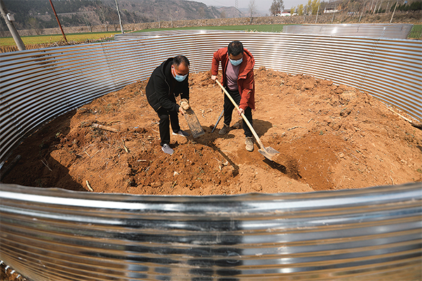 3月29日,王屋鎮(zhèn)西門村的村民正在進(jìn)行“桶養(yǎng)魚(yú)”項(xiàng)目的前期準(zhǔn)備工作。