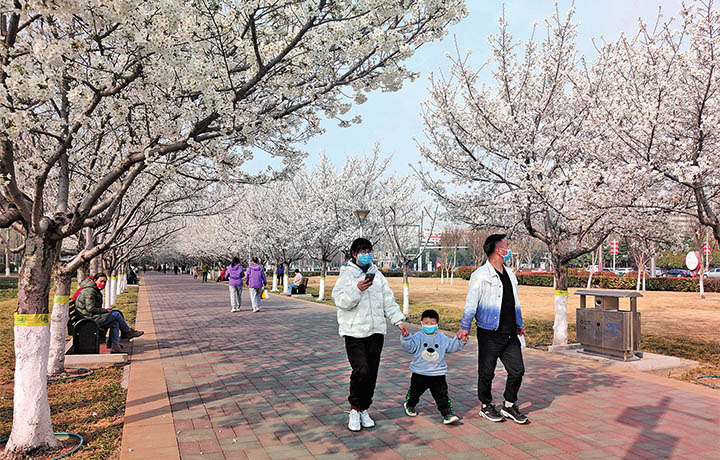 蜿蜒的河水清澈見底,次第綻放的梅花、迎春花、海棠花裝飾兩岸。湨河沿岸是市民每年春天必“打卡”地之一。由于景色優(yōu)美、游人漸多,近年,濟(jì)源相關(guān)部門修建了健身步道和階梯,不斷完善休憩游覽設(shè)施。“花一開,河岸兩旁都是游客,賞花、踏青好不快樂?!奔易颖卑兜氖忻窈罱úㄐχf,家門口就是花園,這樣的環(huán)境讓他每天的心情也變好了。