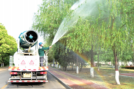 隨著楊柳絮增多,濟源增加噴灑藥劑頻次,有效減少空氣中的懸浮顆粒物,使飛絮降落地面,方便清掃。同時,加大保潔力度,做到隨有隨收,及時清理成團的楊柳絮,保證路面干凈整潔。