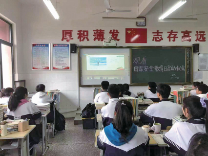 4月15日,濟(jì)源六中學(xué)生在觀看全民國家安全教育日活動啟動儀式視頻