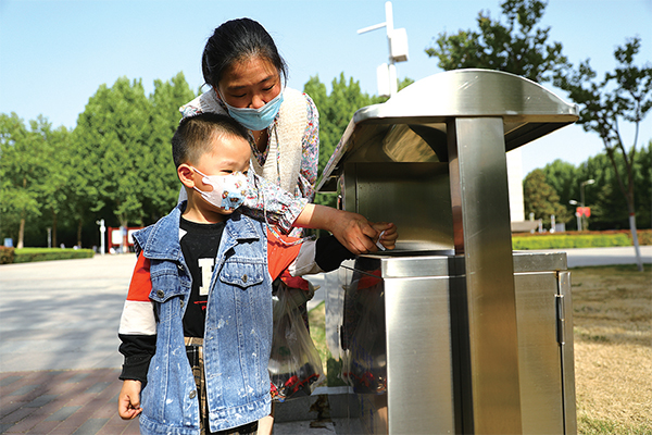 4月22日下午,記者在世紀(jì)廣場看到,不少家長領(lǐng)著孩子在這里游玩。一個兩歲多的孩子拉著媽媽要棒棒糖。媽媽從提包里掏出一個棒棒糖,并把糖紙撕開,遞給孩子。孩子一邊拿著棒棒糖,一邊把糖紙扔到不遠(yuǎn)處的垃圾箱里。市民感嘆,這么小的孩子就知道不能亂扔垃圾。孩子的母親說:“從他學(xué)會走路起,我就教導(dǎo)他不能亂丟垃圾,爭當(dāng)環(huán)保小衛(wèi)士?,F(xiàn)在他不管在哪兒,只要發(fā)現(xiàn)地上有果皮、紙屑等,就會及時撿起來,扔進(jìn)垃圾箱里,已經(jīng)養(yǎng)成習(xí)慣了。”