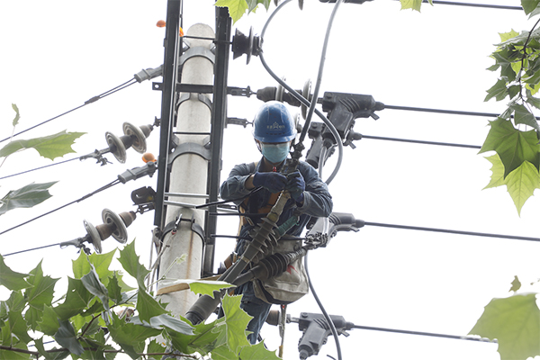 5月15日,濟(jì)源供電公司市區(qū)供電中心工作人員正在10千伏玉泉西線北堰頭支線25號(hào)桿上加裝配網(wǎng)自動(dòng)化開關(guān)。濟(jì)源供電公司采取在現(xiàn)有配電線路上加裝開關(guān)的方式進(jìn)行改造,在負(fù)荷合理分割的同時(shí),將線路建設(shè)成多分段適度聯(lián)絡(luò)的接線模式,實(shí)現(xiàn)區(qū)域內(nèi)所有配電線路的自愈功能,提升配網(wǎng)供電能力和水平。張磊 攝