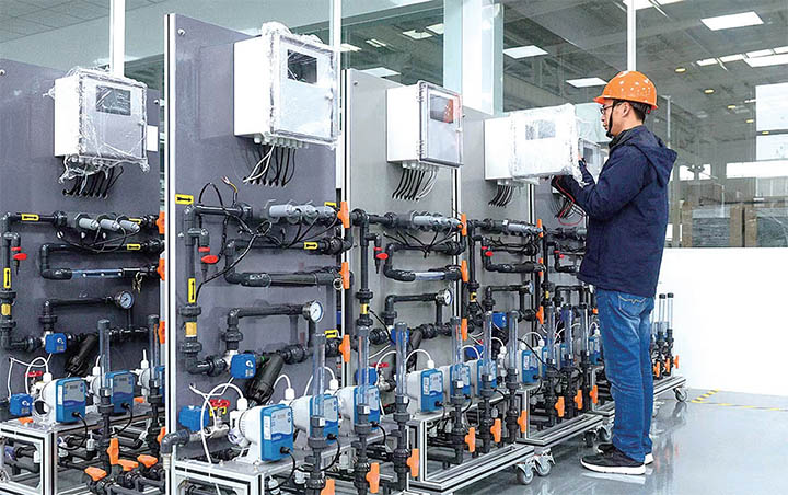 清水源工作人員正在調(diào)試“水云蹤”智能終端設(shè)備(資料圖片)