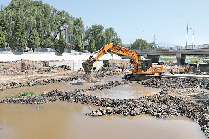 5月17日,蟒河河道改造提升工程加快施工。