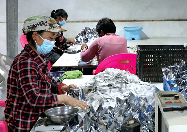 5月27日,下冶鎮(zhèn)大嶺村農(nóng)民在合作社分裝艾草足浴包。端午節(jié)臨近,艾草飄香。艾草產(chǎn)品加工企業(yè)接到不少訂單,助力農(nóng)民增收。記者 王鴻斐 通訊員 李建軍 攝