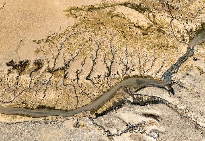 近日,隨著黃河小浪底水利樞紐汛前調(diào)水調(diào)沙的結(jié)束,黃河小浪底庫(kù)區(qū)水位下降,大面積河床裸露出水面,河水在河床上沖刷留下的痕跡形成黃河“沙畫”。新華社發(fā)(苗秋鬧 攝)