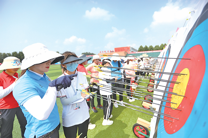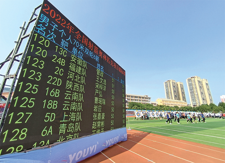 男子反曲弓個(gè)人70 米第一輪賽比賽現(xiàn)場。記者 李楠 攝