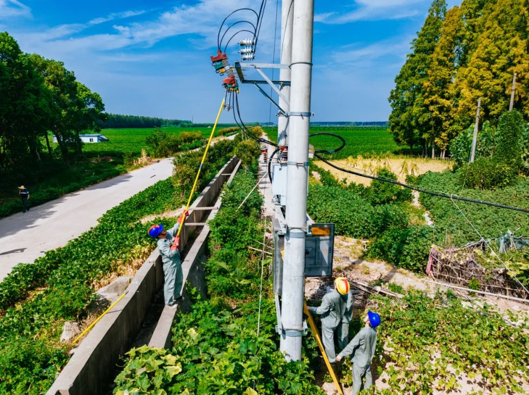 ▲8月16日,國(guó)網(wǎng)安徽廬江縣供電組織員工在白湖鎮(zhèn)開展抗旱打水供電線路架設(shè)工作,保障當(dāng)?shù)剞r(nóng)戶夏季農(nóng)作用電穩(wěn)定。丁文康 攝