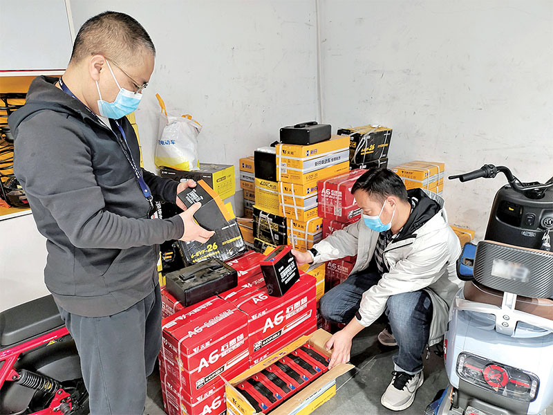 10月28日,示范區(qū)市場(chǎng)監(jiān)管部門(mén)的工作人員在一家電動(dòng)自行車(chē)銷(xiāo)售門(mén)店檢查電池。連日來(lái),示范區(qū)開(kāi)展電動(dòng)自行車(chē)市場(chǎng)專(zhuān)項(xiàng)整治行動(dòng),加強(qiáng)對(duì)電動(dòng)自行車(chē)銷(xiāo)售、維修等門(mén)店的監(jiān)管,著重查處不符合標(biāo)準(zhǔn)的電動(dòng)自行車(chē)、電池等,促進(jìn)電動(dòng)自行車(chē)行業(yè)健康發(fā)展,保障人民群眾生命財(cái)產(chǎn)安全。
