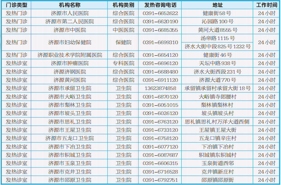 請收藏!濟源發(fā)熱門診信息更新