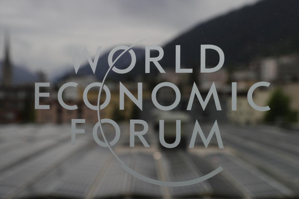 這是2022年5月22日在瑞士達(dá)沃斯拍攝的世界經(jīng)濟(jì)論壇年會的標(biāo)識。新華社記者 鄭煥松 攝