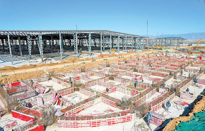 這是記者2月21日拍攝的進(jìn)出口加工貿(mào)易產(chǎn)業(yè)園A區(qū)項目施工場景。